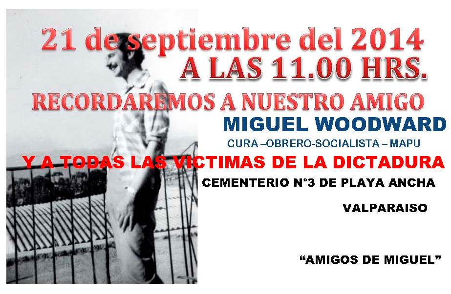 Inauguración de la Placa-homenaje del Comité Memoria MAPU al sacerdote Miguel Woodward, en el Memorial del Cementerio de Playa Ancha (Valparaíso) el 29 de enero de 2011 (ver Saludo del Comité en formato PDF)