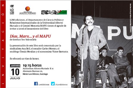 n el Auditorium de la ANEF y con más de 100 asistentes celebramos el 42º Aniversario del MAPU y presentamos el libro "El MAPU realidad o mito", comentado por los compañeros Gabriel Gaspar, Oscar Guillermo Garretón y José Bengoa (ver mas detalles).